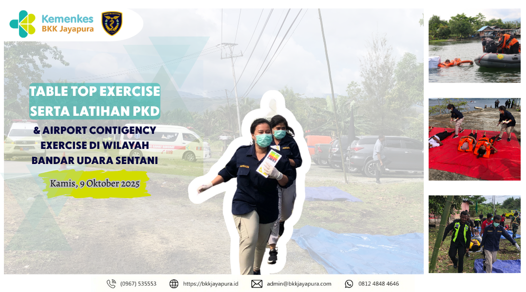 Balai Kekarantinaan Kesehatan (BKK) Kelas I Jayapura turut berpartisipasi dalam kegiatan Table Top Exercise serta Latihan Penanggulangan Keadaan Darurat (Partial Exercise) dan Airport Contigency Exercise yang berlangsung di wilayah kerja Bandar Udara Sentani, Kabupaten Jayapura.