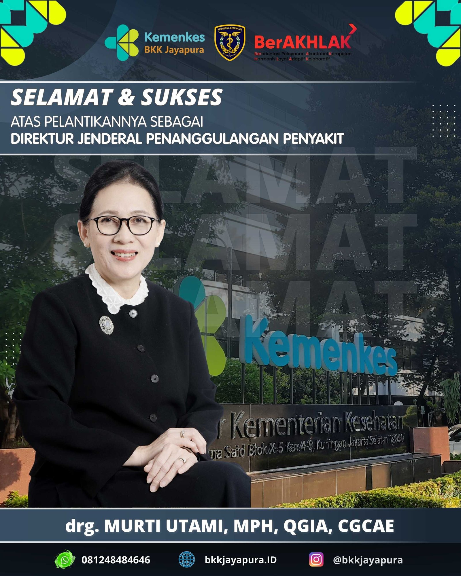 Selamat dan Sukses kepada drg. Murti Utami, MPH, QGIA, CQCAE atas pelantikan sebagai Direktur Jenderal Penaggulangan Penyakit.
