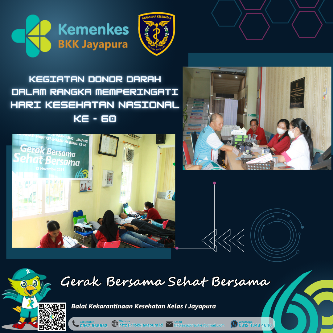 Dalam rangka memperingati Hari Karantina Indonesia ke-148, Balai Kekarantinaan Kesehatan Kelas I Jayapura bersama Balai Karantina Ikan, Hewan, dan Tumbuhan berSinergi dalam aksi donor darah.