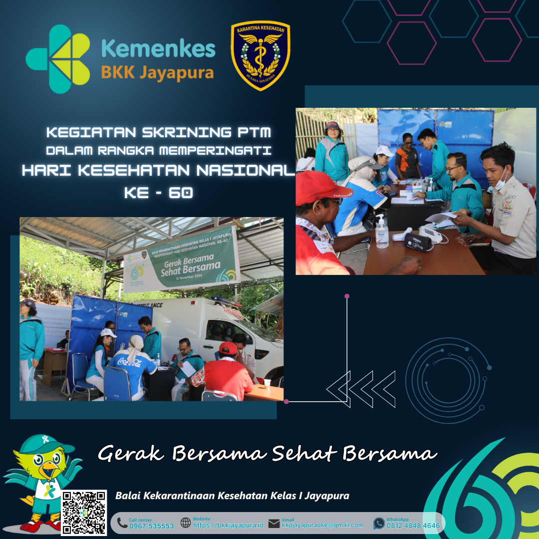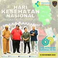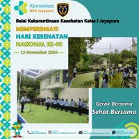 Peringatan Hari Kesehatan Nasional Ke-60 Tahun 2024. Kepala Balai Kekarantinaan Kesehatan Kelas I Jayapura Bersama PJ. Sekda Kota Jayapura dan Ka. Dinkes Kota Jayapura, Tingkat Kota Jayapura, di Lapangan Apel Kantor Walikota Jayapura.