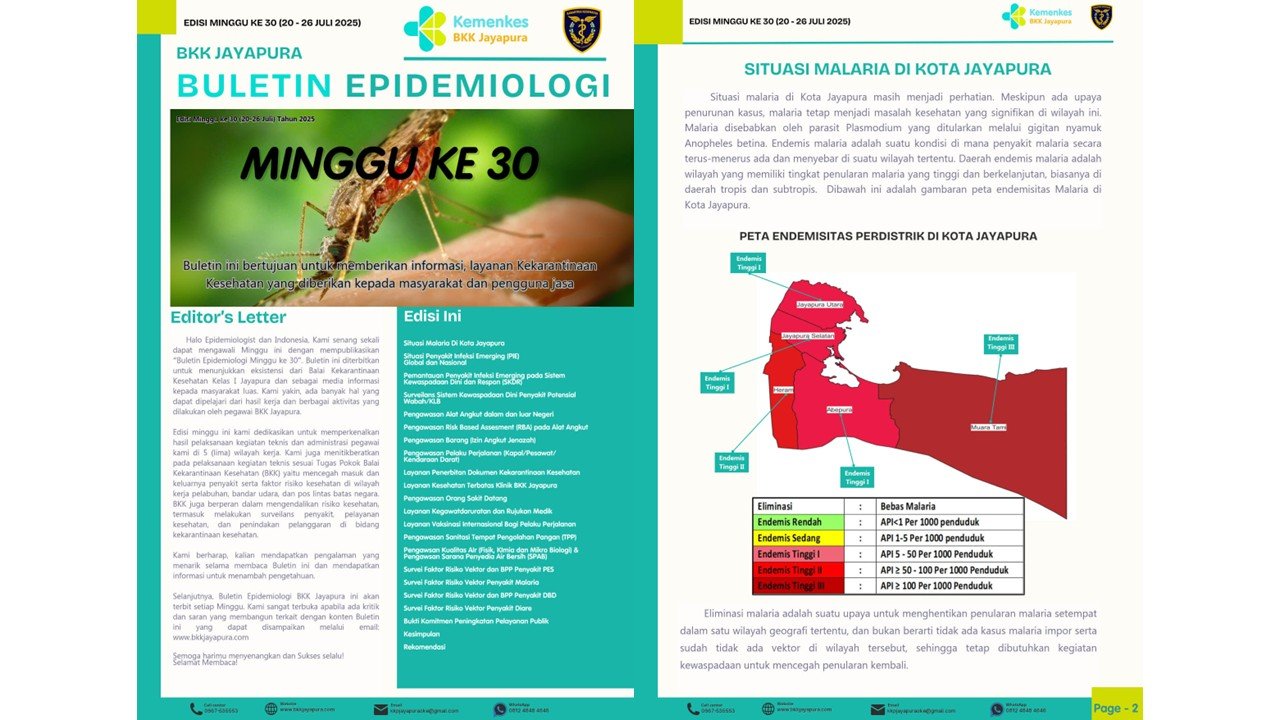 Gambaran kegiatan yang telah dilakukan di Wilayah Kerja Balai Kekarantinaan Kesehatan Kelas I Jayapura, guna Pengendalian Faktor Risiko Penyakit Potensial KLB/Wabah yang dapat menyebabkan masalah Kedaruratan Kesehatan Masyarakat sesuai dengan Tugas Pokok dan Fungsi yaitu Cegah Tangkal Penyakit, pada Minggu Epidemiologi ke-30 dapat dilihat dan didownload melalui link berikut: https://heyzine.com/flip-book/b32fffb3a4.html