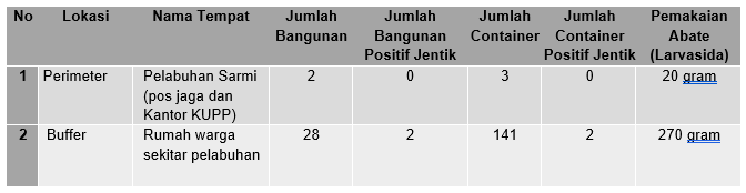 Hasil survei jentik Aedes sp. di wilayah kerja Pelabuhan Laut Sarmi pada tanggal 25 November 2025 dapat dilihat pada tabel berikut