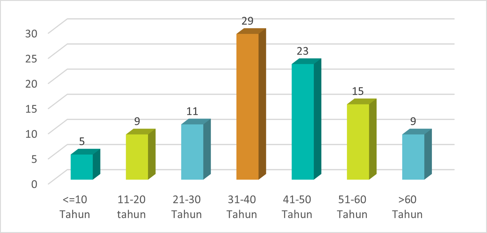 Gambar grafik di atas menjelaskan distribusi pelaku perjalanan internasional berdasarkan waktu selama bulan Desember 2025. Pada grafik tersebut dapat dilihat pelaku perjalananan yang datang untuk melakukan vaksinasi paling tinggi pada usia 31 – 40 tahun yaitu sebanyak 29 orang atau 28 % sedangkan paling sedikit yaitu usia <10 tahun yaitu sebanyak 5 orang atau sebanyak 4,8 %.