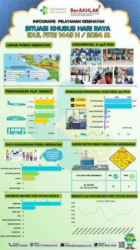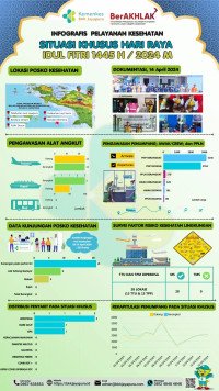 Info grafis pelayanan kesehatan pada situasi khusus Hari Raya Idul Fitri 1445 H/2024 M Balai Kekarantinaan Kesehatan (BKK) Kelas I Jayapura periode 03-16 April 2024. #Mudik Aman, Sehat, dan Selamat