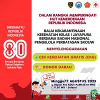 Dalam rangka memperingati HUT Kemerdekaan Republik Indonesia Balai Kekarantina an Kesehatan Kelas I Jayapura bersama Badan Nasional Pengelola Perbatasan Skouw Menyelenggarakan kegiatan :1. Cek keseha