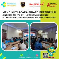 Mengikuti Acara Pidato Presiden RI Jenderal TNI (Purn) H. Prabowo Subianto secara daring di kantor induk BKK Kelas I Jayapura